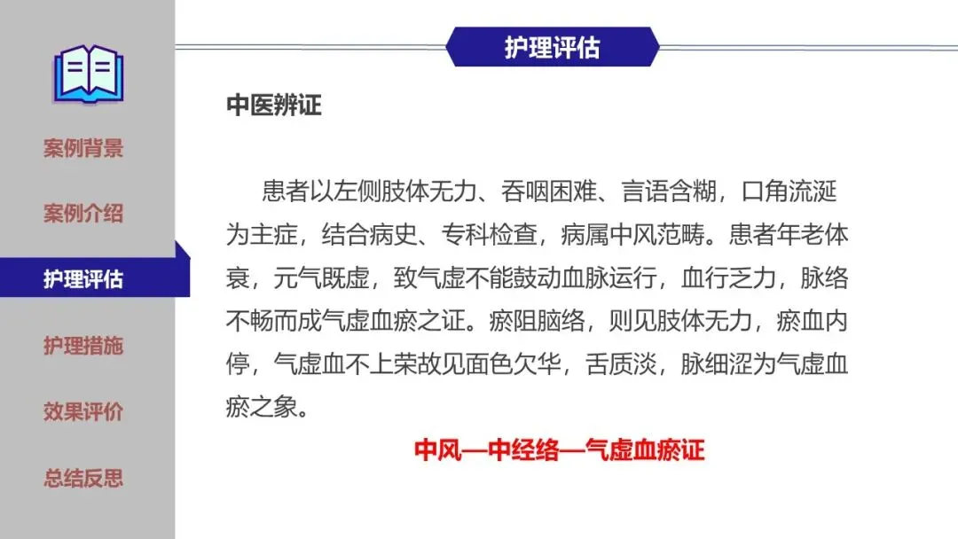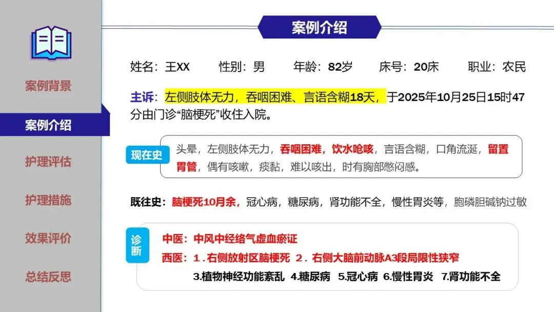本案例是一位老年男性,患者因中风后遗留吞咽障碍,针对其高发,高危的吞咽障碍问题,护理团队创新性地采用“揿针联合蜜芽罐”的中医特色技术,结合现代康复护理措施,构建了基于吞咽功能分期的中西医结合康复路径。