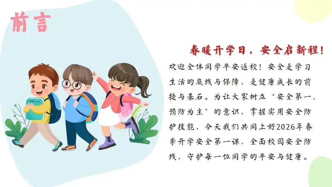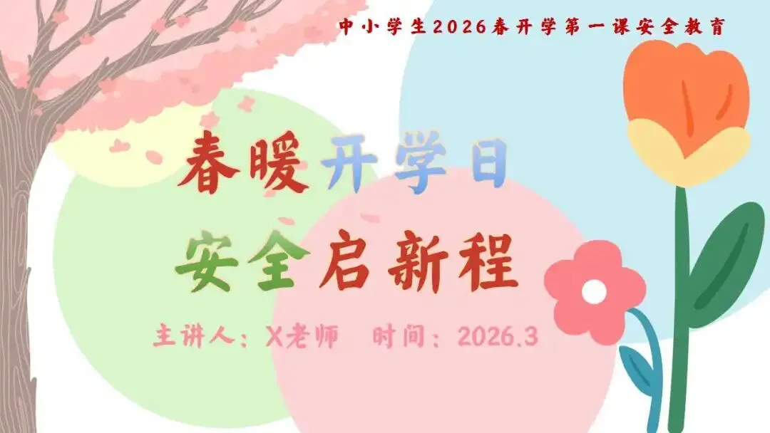 >中小学开学安全教育班会ppt:春暖开学日,安全启新程.含教学设计、逐字稿、视频