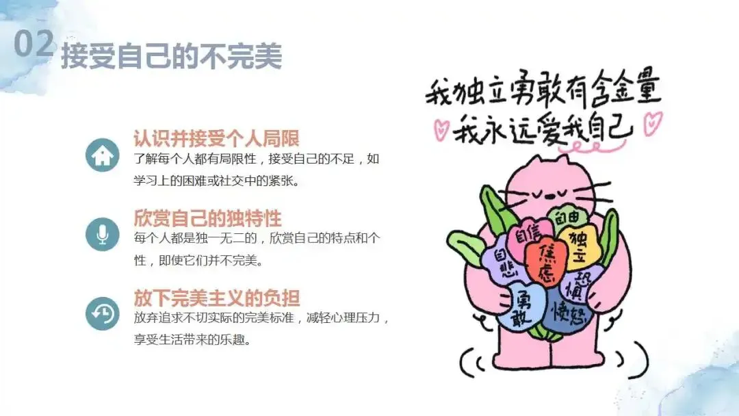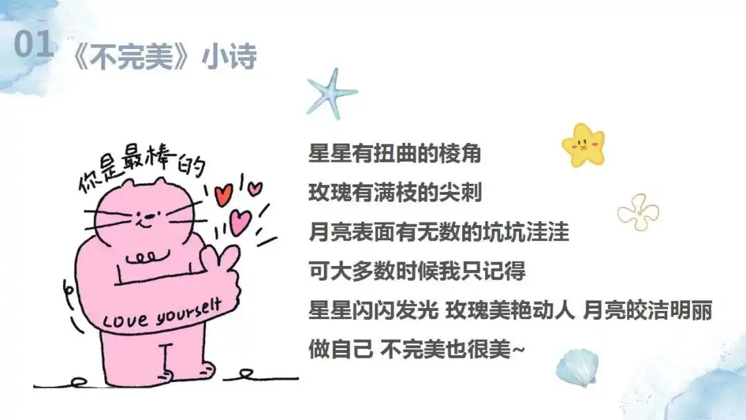 >【通用 】心理健康课班会ppt:我很喜欢不完美的自己.(含讲稿)