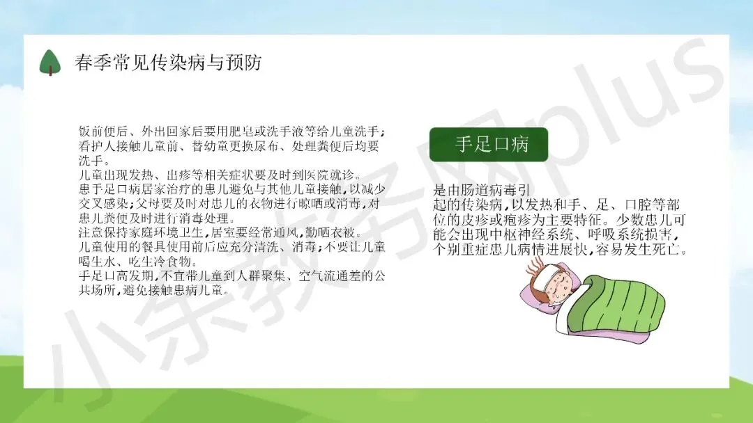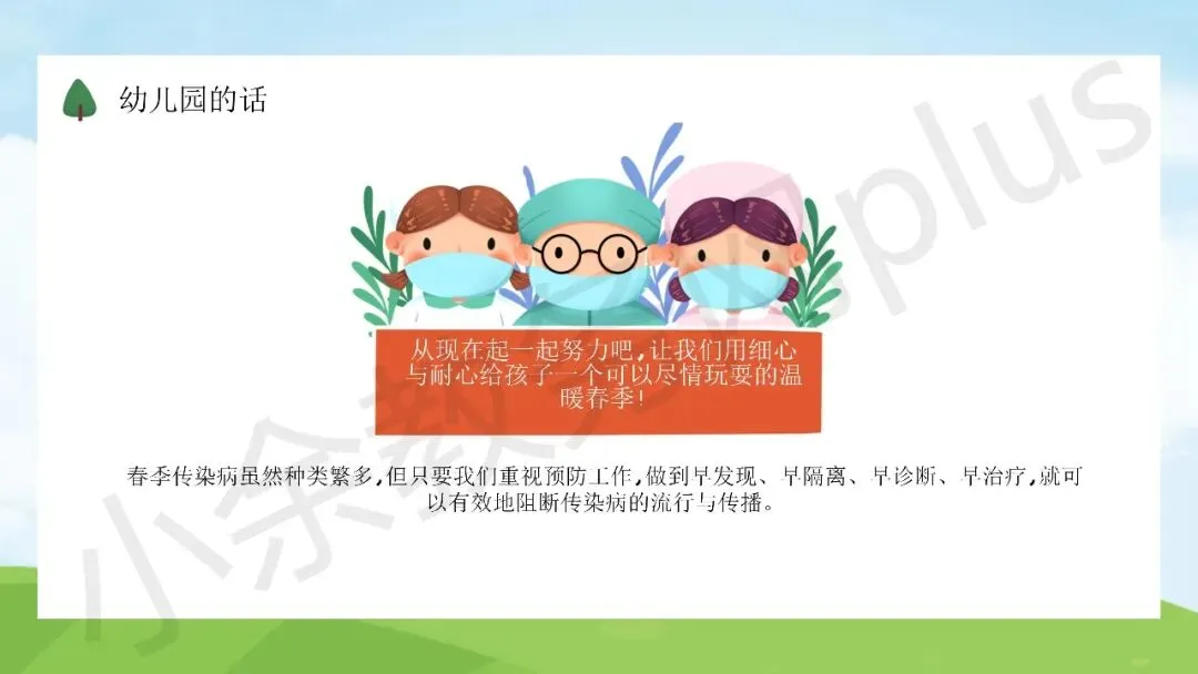 下面是这份幼儿园春季传染病预防知识 PPT 课件的预览,共 19 页。