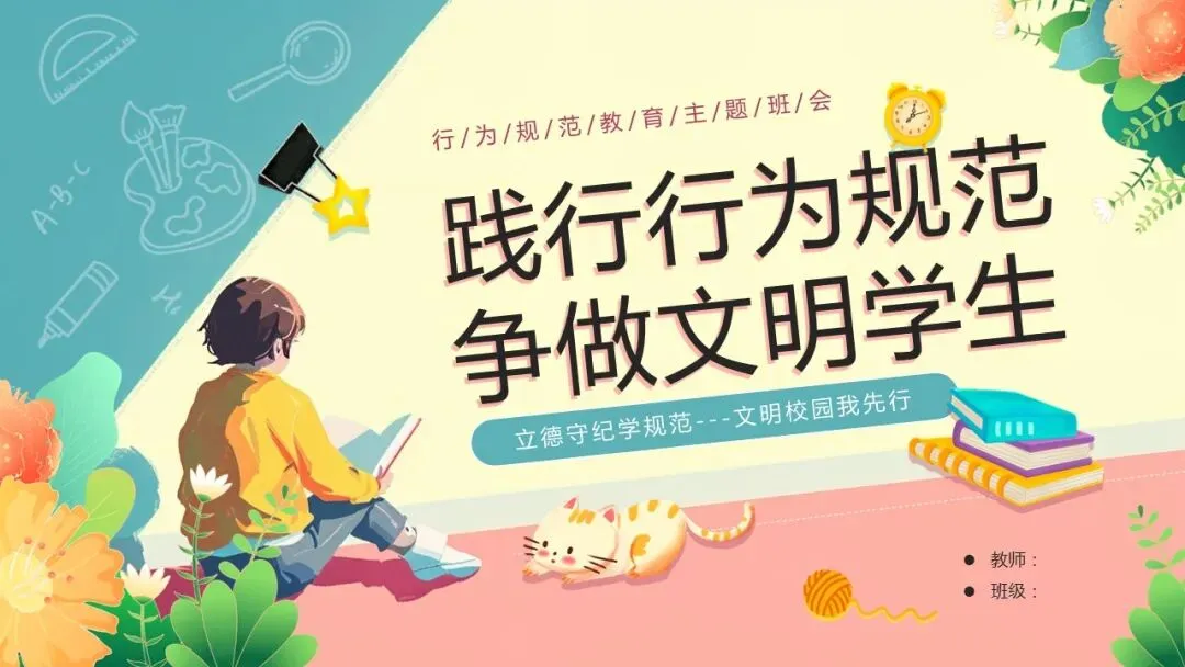 行为规范教育班会PPT:践行行为规范,争做文明学生。涵养文明习惯,点亮成长底色。