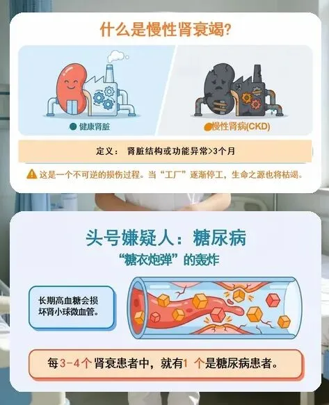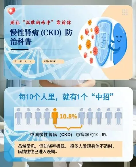 各位同事、朋友们,今天咱们聚焦慢性肾衰竭的防治展开科普交流,核心不是堆砌专业知识,而是想和大家一起拆透这个 “沉默杀手” 的真面目,把早期识别、病因防控、日常护肾的实操要点讲明白,让咱们不管是自我防护还是照护他人,都能心中有数、科学应对,守住肾脏健康防线。