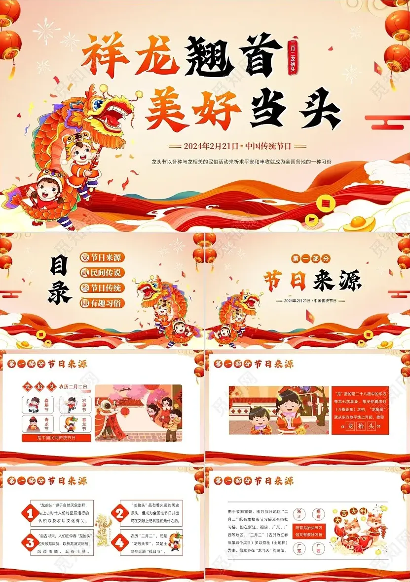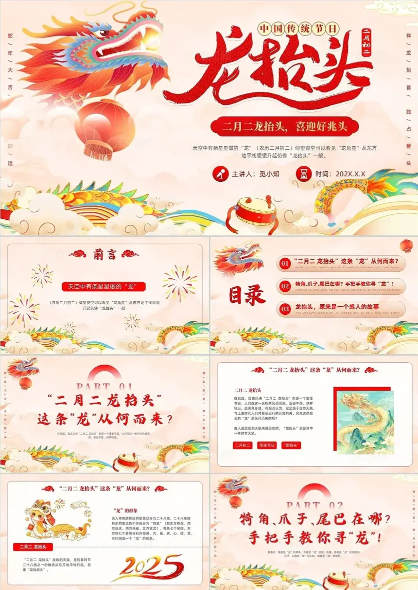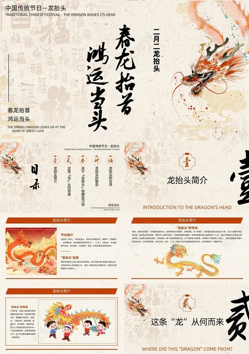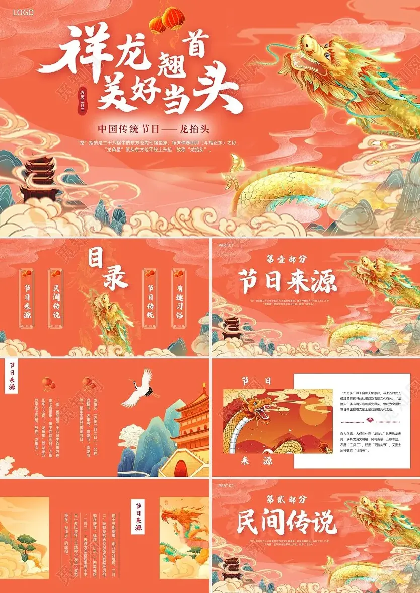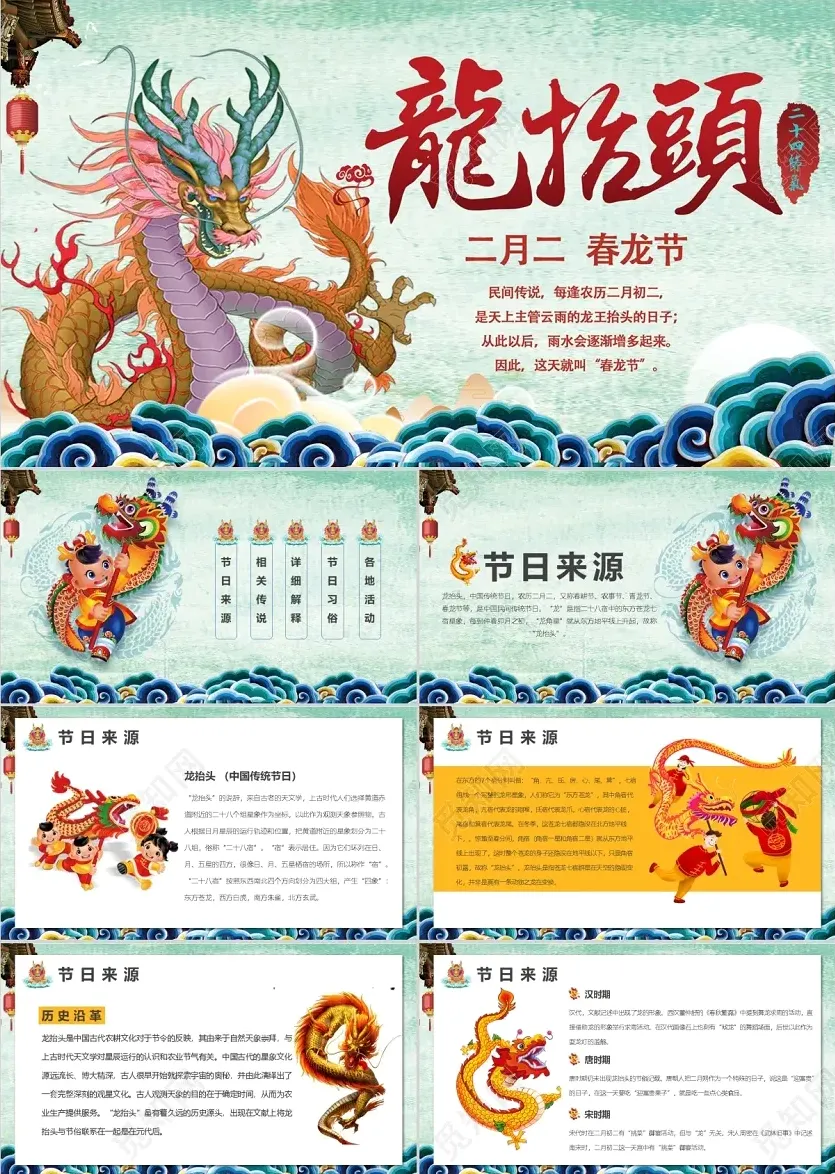 ◆本期分享:二月二龙抬头主题主题主题PPT模板(10套)