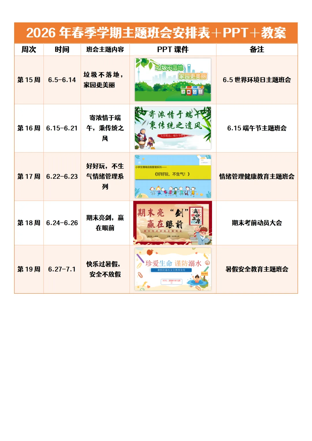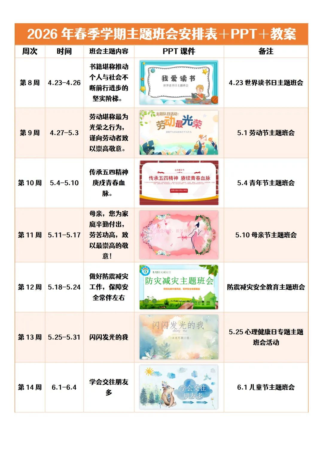 四、班会内容概览表(基于PPT)