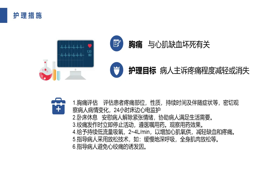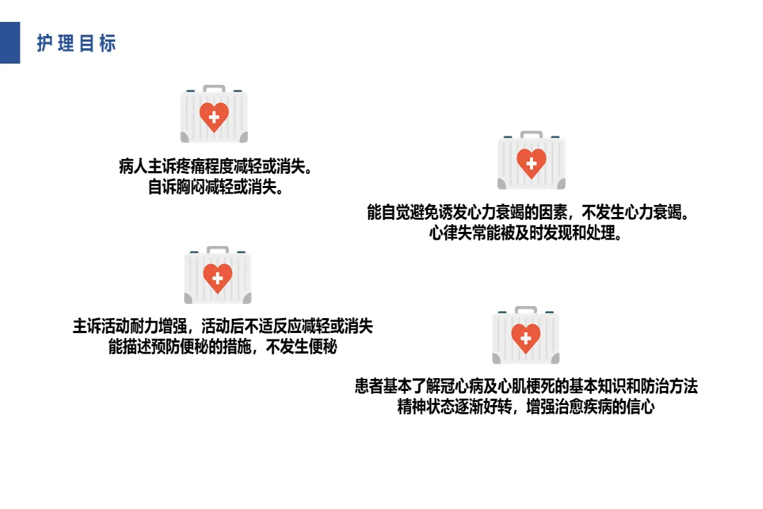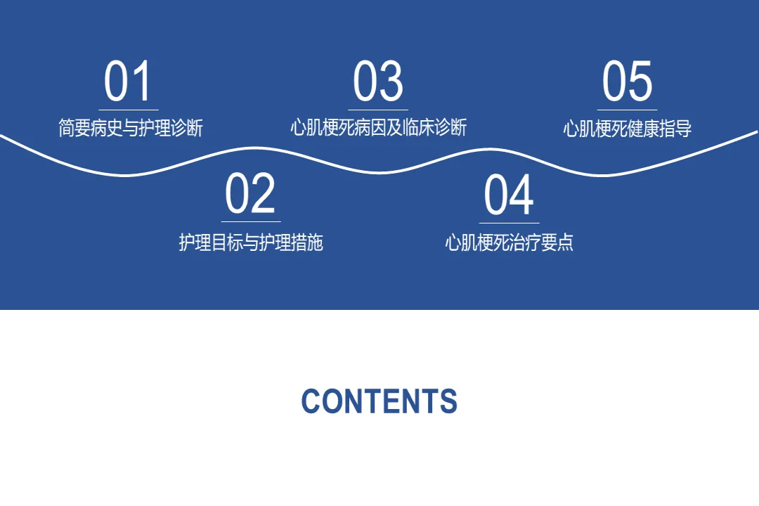 🍎内容:急性心肌梗死护理查房-医护PPT模版📅页数:共31页,无水印可二次编辑🌲目录:01 简要病史与护理诊断02 护理目标与护理措施03 心肌梗死病因及临床诊断04 心肌梗死治疗要点05 心肌梗死健康指导