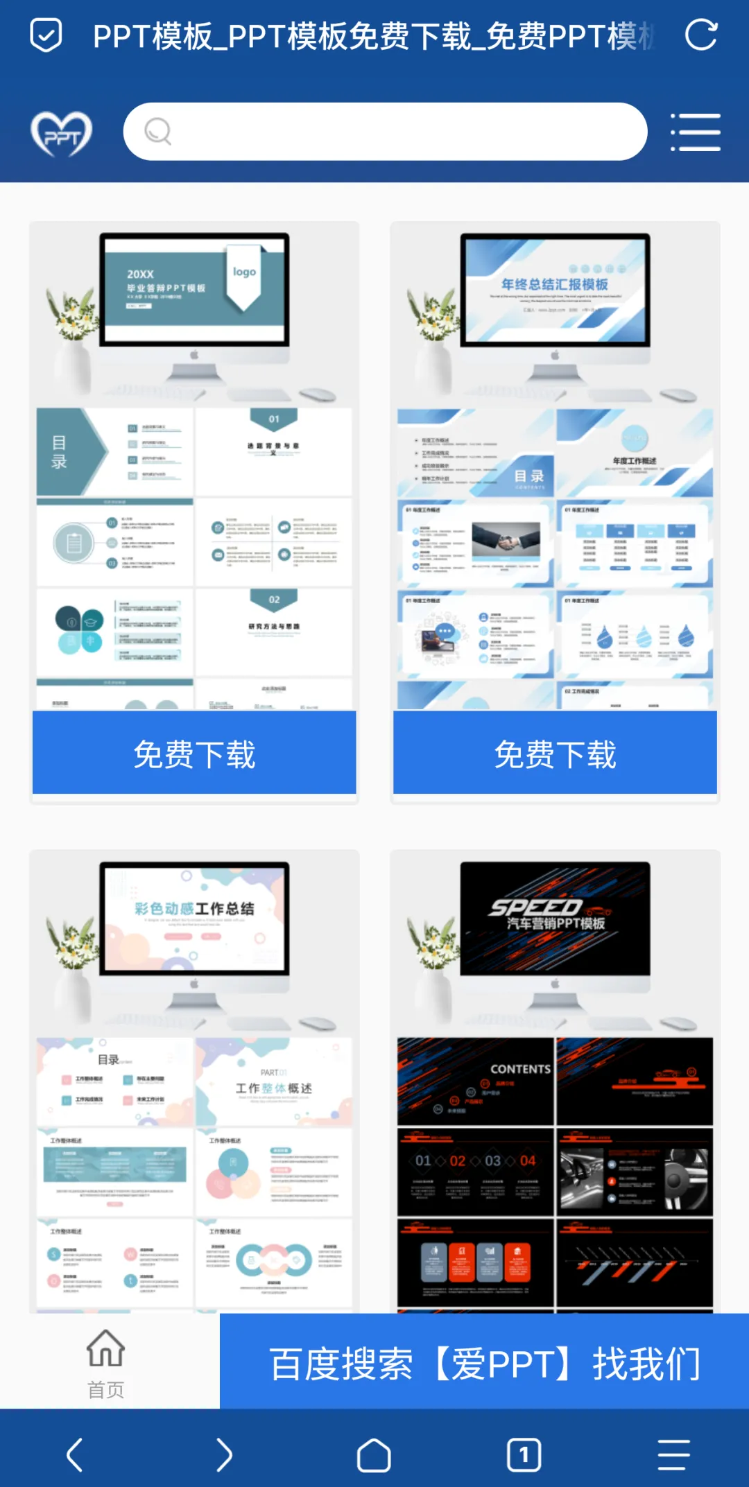 一个PPT模板和课件下载的网站,找到合适的直接就可以下载。手机上电脑上都可以操作。https://m.2ppt.com/