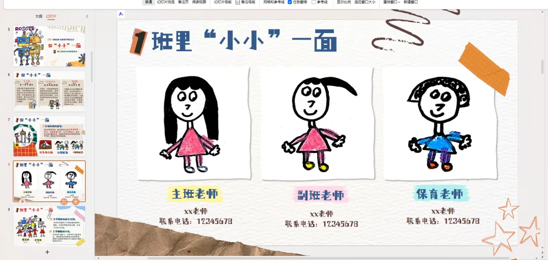 本学期仍由我担任主班老师,负责孩子们的日常生活、言语、认知、艺术领域教学以及家长沟通工作,配班老师××老师深受孩子们的喜欢,主要负责健康、社会领域教学,我们班的保育老师是××老师,主要负责孩子们的日常生活。