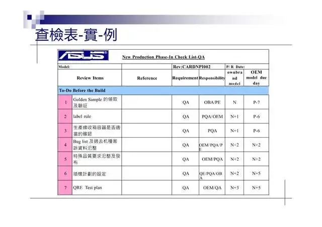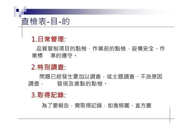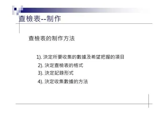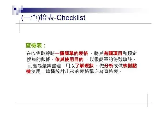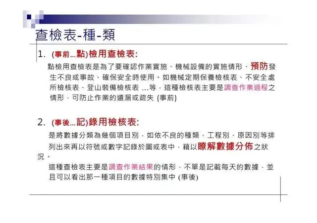 1.查檢表(Checklist):收集、整理實料