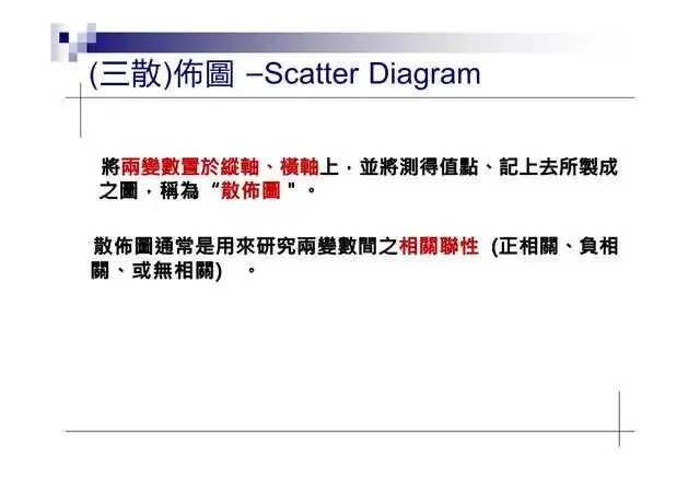 3.散佈圖(Scatter Diagram):展示變數之間的線性關像