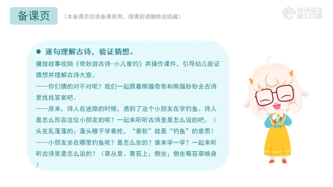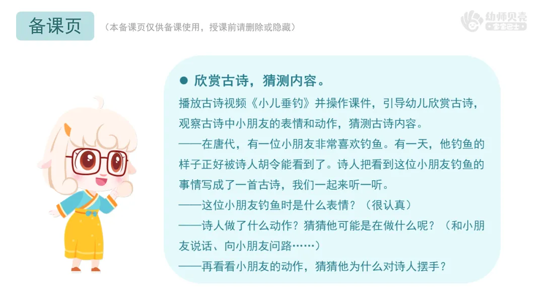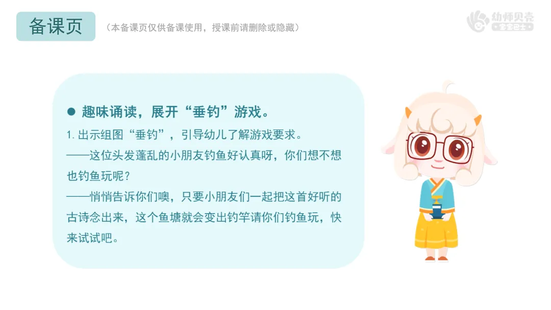 l能根据画面信息猜测古诗内容,尝试在趣味游戏中诵读古诗。