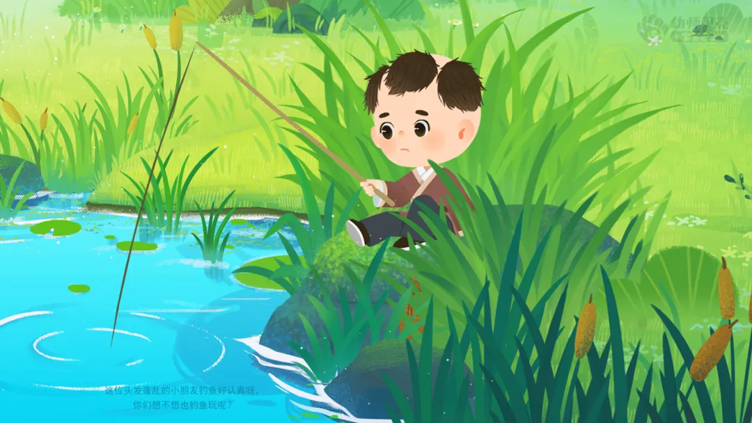 ——这位头发蓬乱的小朋友钓鱼好认真呀,你们想不想也钓鱼玩呢?