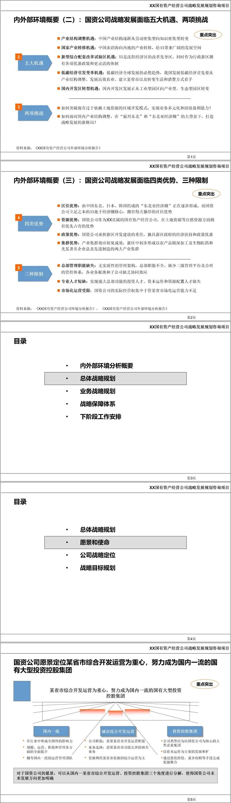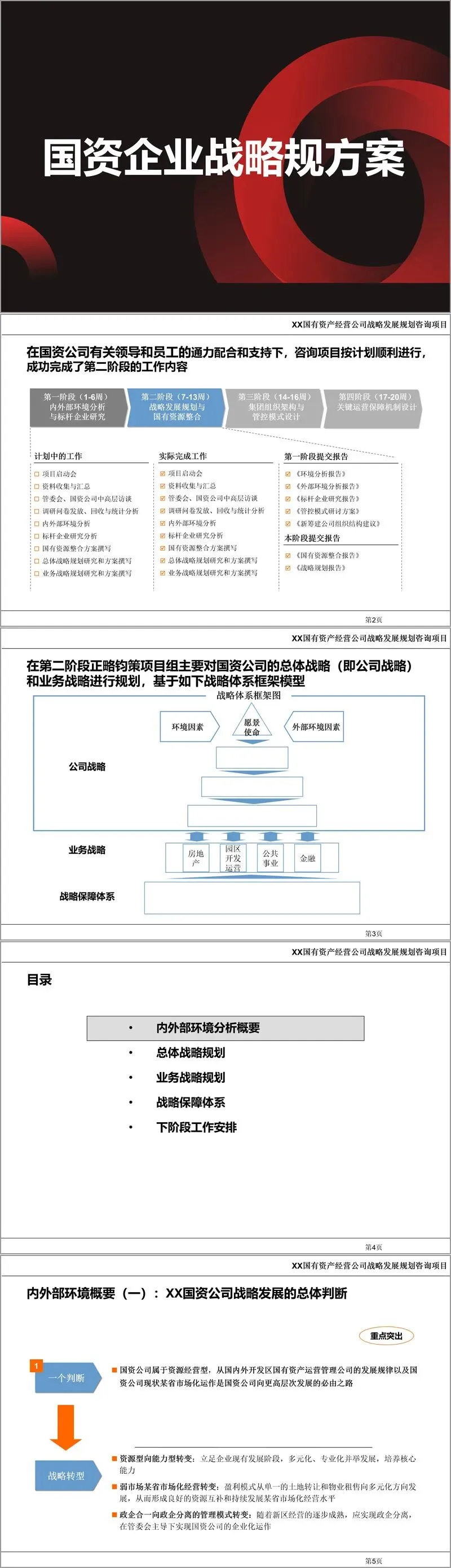 本规划方案是针对 XX 国有资产经营公司的战略发展咨询成果,系统涵盖项目推进、内外部环境分析、总体战略、业务战略、战略保障及后续工作安排等核心内容,为国资公司实现高质量发展提供全面指引。