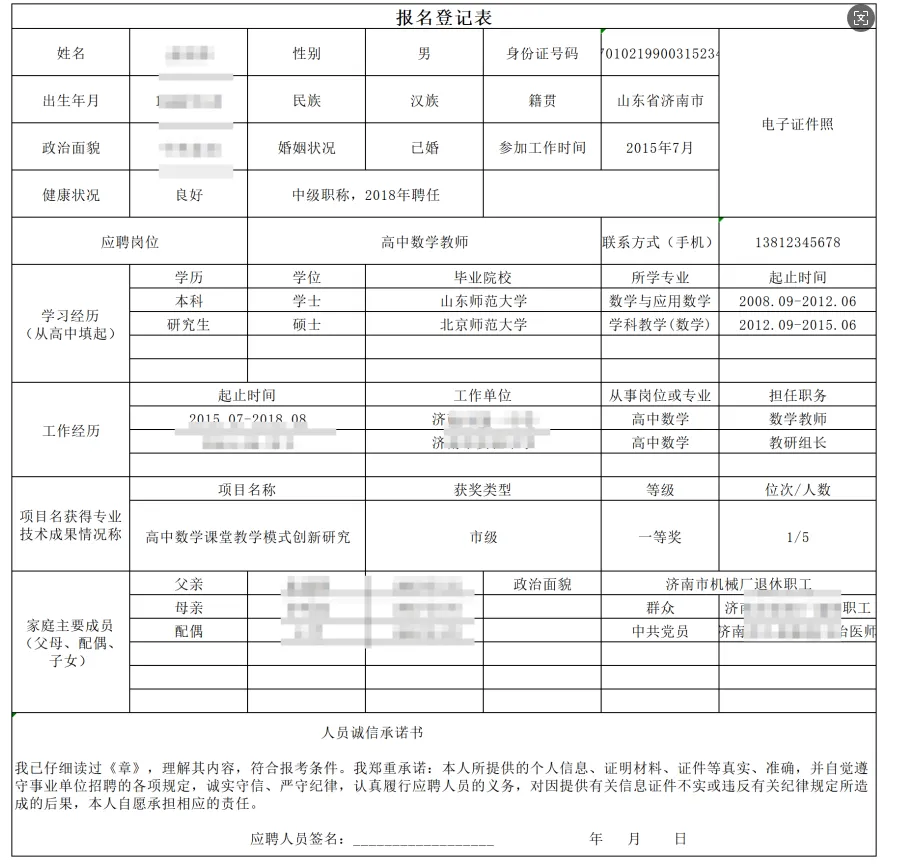 其中这份报名登记表是 Excel 格式,结构复杂,还带合并单元格;最后一张表格难度最高,是本次测试的重点。