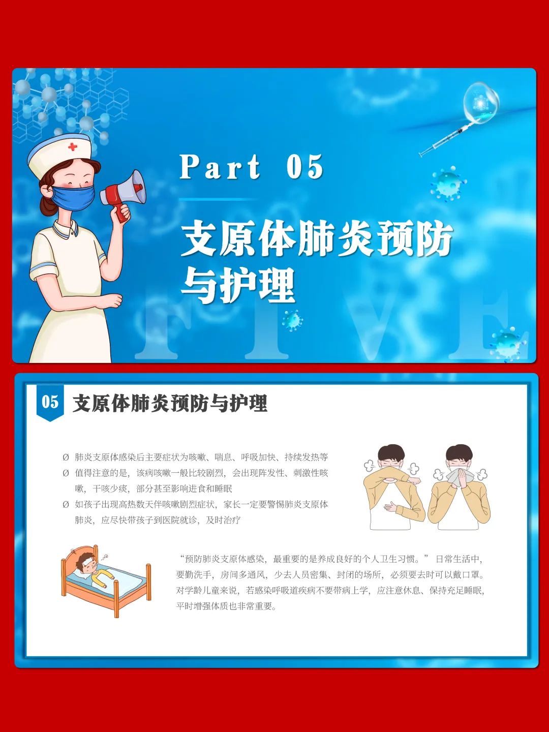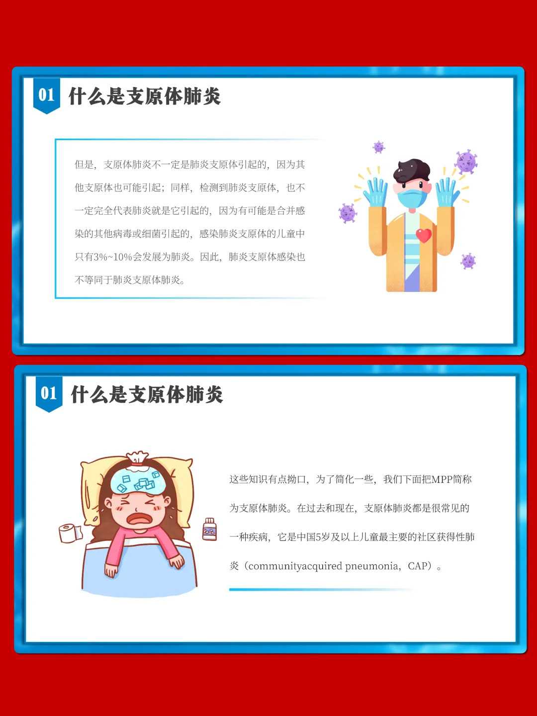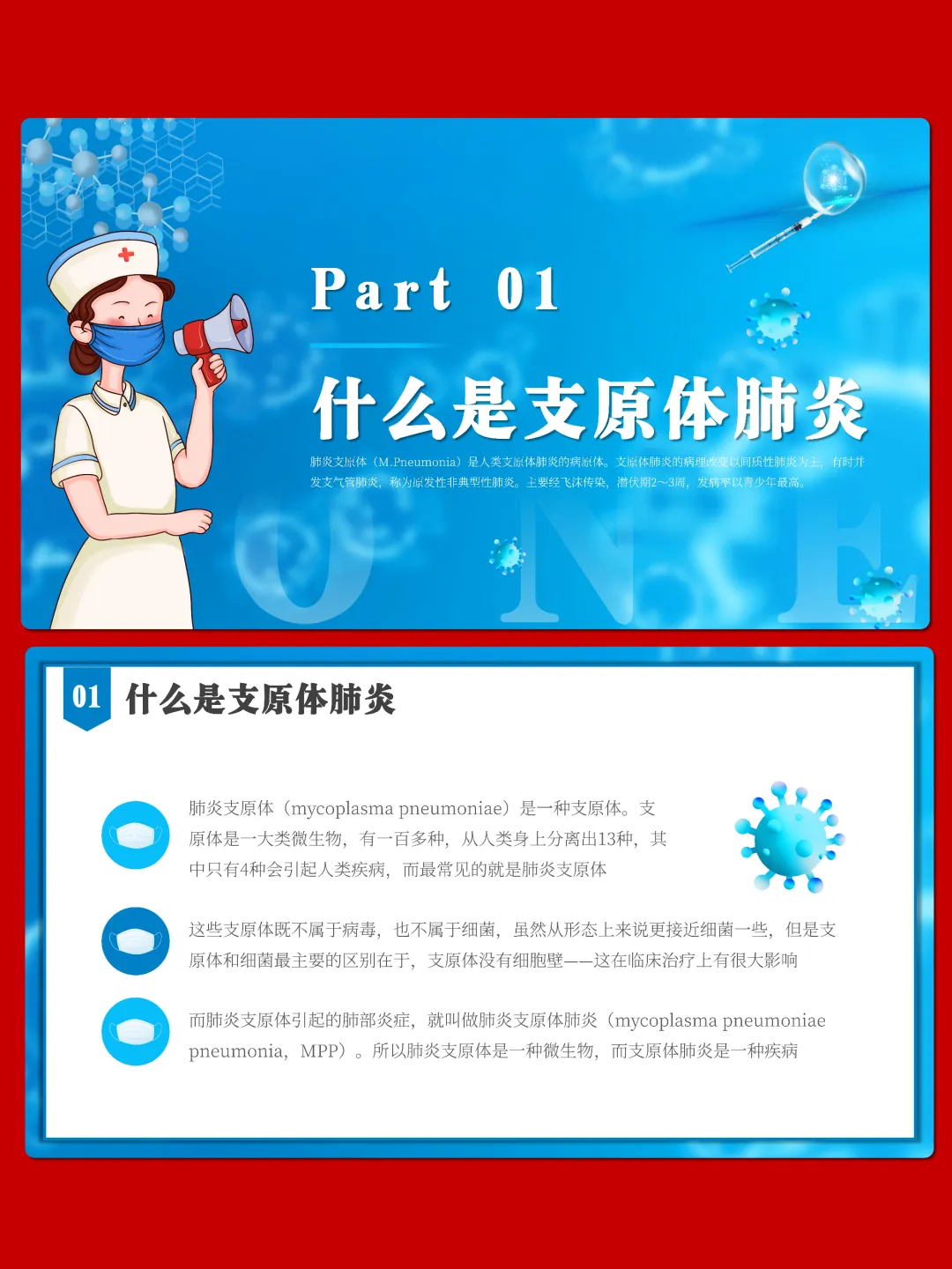 各位同仁,今天我们分享预防支原体肺炎的相关知识。支原体肺炎是由肺炎支原体引起的肺部炎症,病理改变以间质性肺炎为主,有时并发支气管肺炎,又称原发性非典型性肺炎。肺炎支原体既不属于病毒也不属于细菌,无细胞壁,这一特点对临床治疗有重要影响。