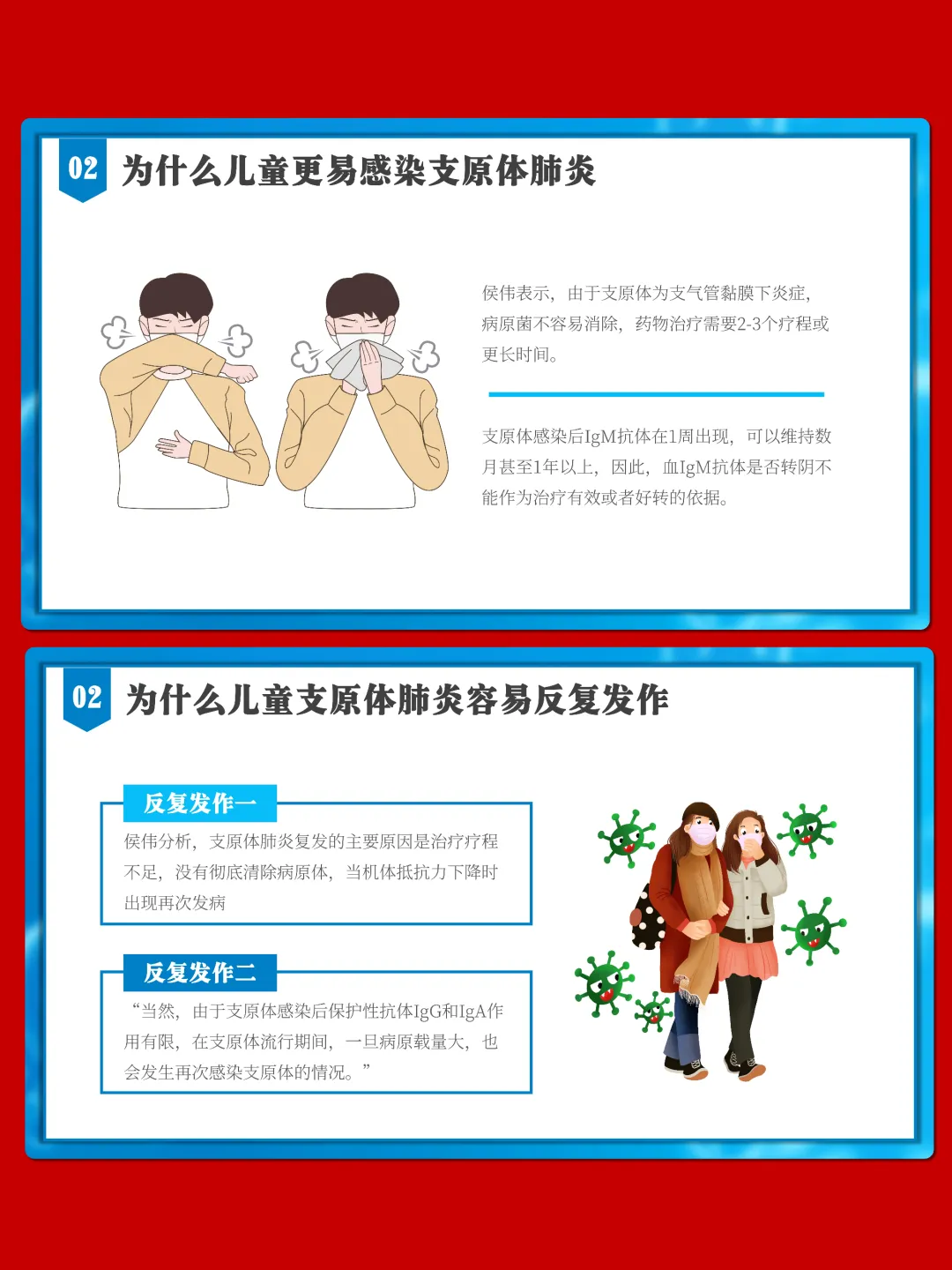 儿童更易感染的原因是免疫系统尚未发育成熟,呼吸道免疫功能较差,且幼儿园、学校人群聚集易导致病原菌传播,近年来患儿呈现低龄化趋势。复发多因治疗疗程不足或保护性抗体作用有限,流行期病原载量大时也可能再次感染。