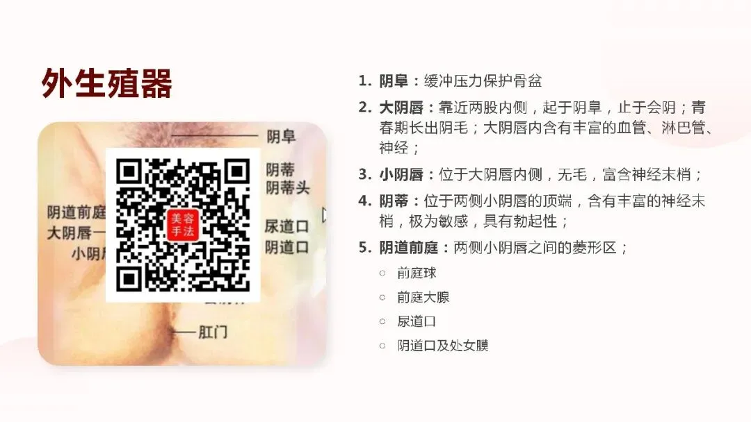 主要内容包含:外生殖器,内生殖器、邻近器官、血管、淋巴及神经、骨盆基础简介与女性生理常识,适合美业私密保养者学习借鉴!