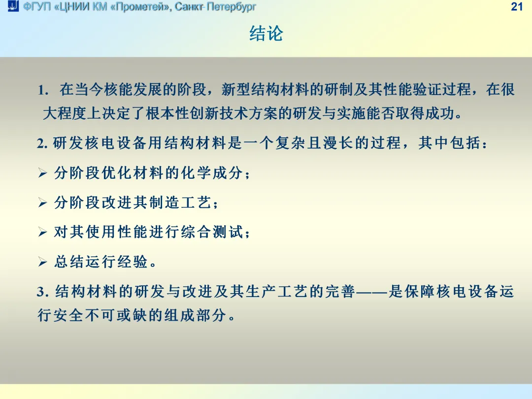【PPT】俄罗斯开发新型结构材料以提高核电站设备的效率与可靠性