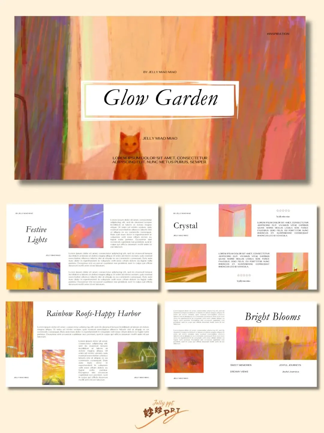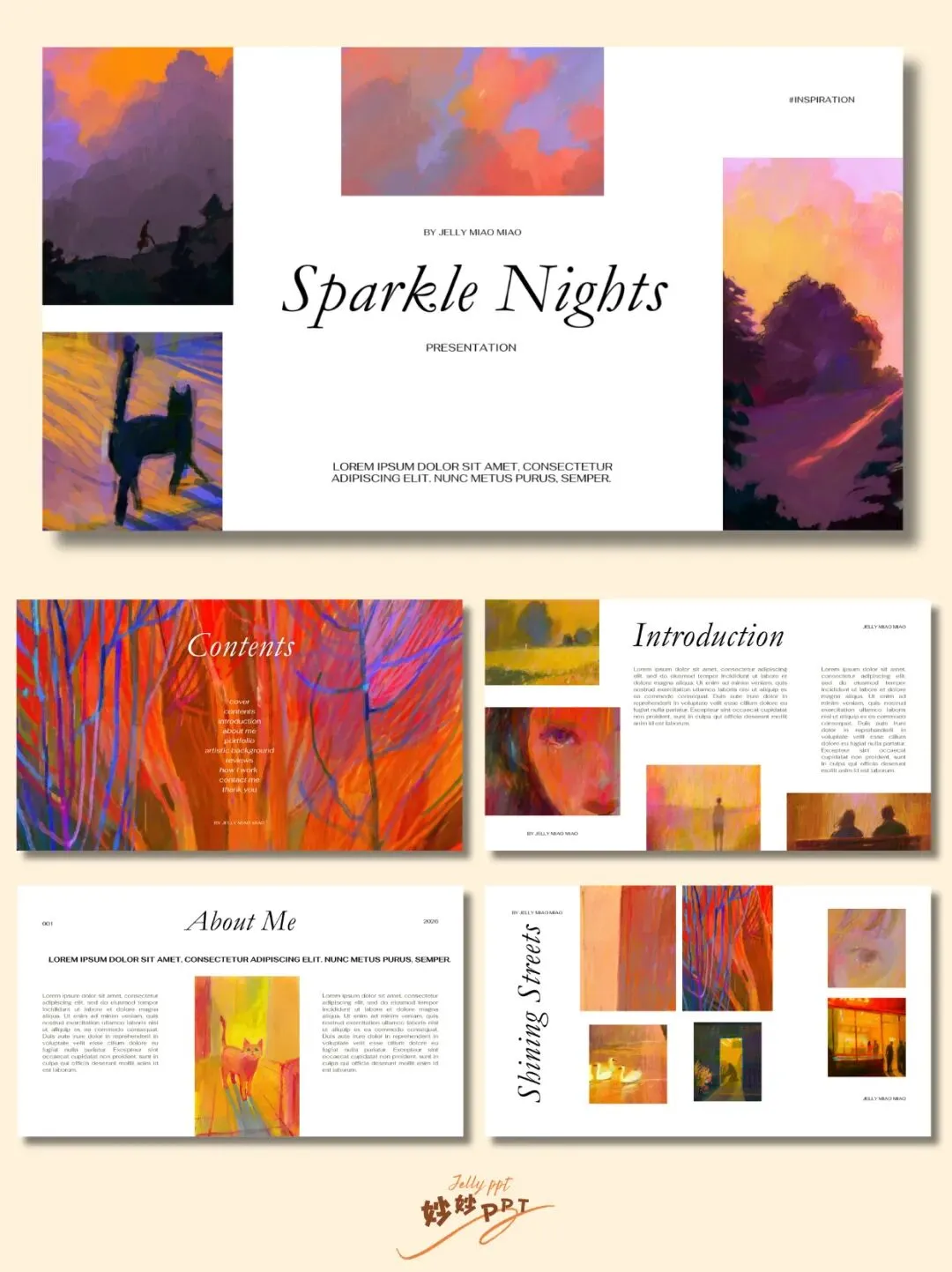 >˶ᗜ��ᗜ˶ಣ|闪亮小镇 插画风PPT|简约ppt|作品集排版|ppt模板|课件
