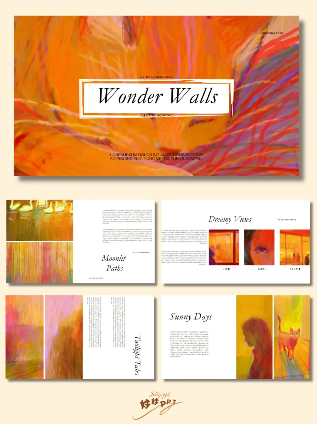 ˶ᗜ��ᗜ˶ಣ|闪亮小镇 插画风PPT|简约ppt|作品集排版|ppt模板|课件