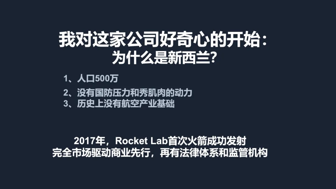 最开始,我对 RocketLab 的投资判断,说到底也是建立在好奇心之上的。我因为我对新西兰这个国家很熟悉,一开始对于能跟 SPACEX 相提并论的公司,以及创始人,是新西兰基因的,我真的特别好奇也觉得不可思议,然乎开始去研究。而不是一开始确信它会赚钱才研究它,而是因为好奇它的故事会如何展开才开始研究,然后在研究过程中形成了投资判断。