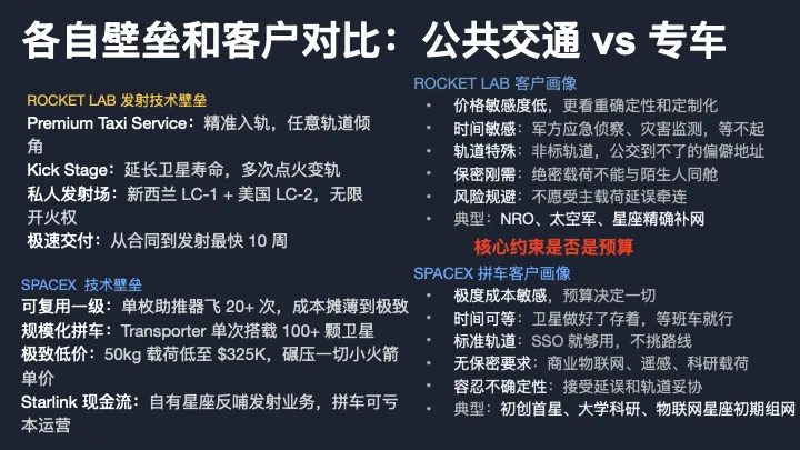 这就是客户差异的关键。SpaceX 拼车的客户,核心约束是预算。初创公司的第一颗验证星,大学的科研载荷、物联网星座的初期组网。他们不挑轨道,不急时间,能省则省,卫星做好了放仓库里等班车就行。