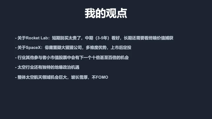 所以现在,除了想跟大家聊聊Rocket Lab 和 SpaceX这两家公司以外,我更想视野拓宽到整条太空产业链。从地面算力到低轨通信,看看那些因为发射成本降低而受益的公司,后头的增长会在哪里。