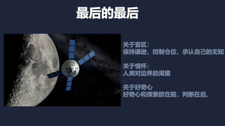 作为一个普通又渺小的投资人,我并非专业工程师。我必须承认,技术可行性对我来说有时仍是一个黑箱。但正如我在这份讲稿最后提到的:好奇心和探索欲在前,判断在后。保持对未知的渴望,能让枯燥的 CapEx 周期等待变得更有意义。