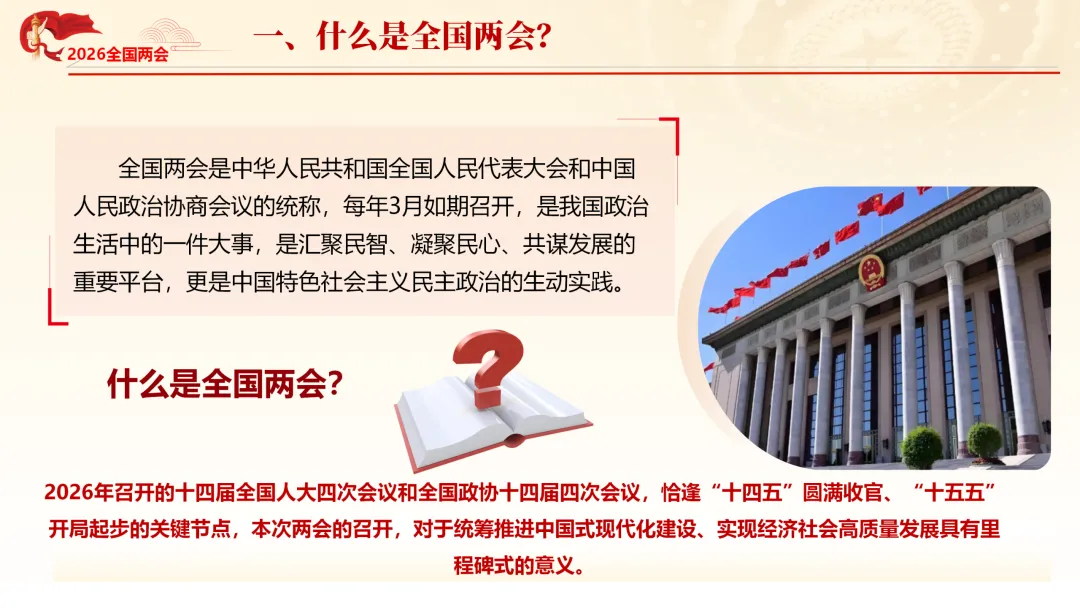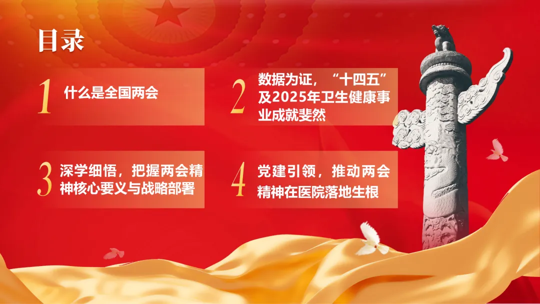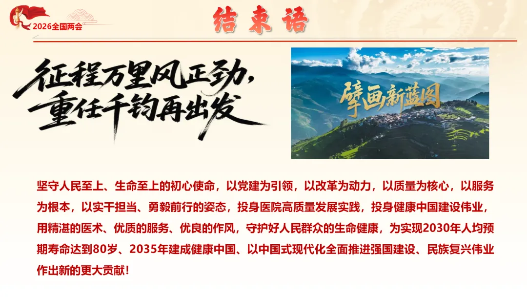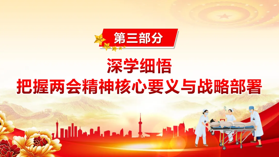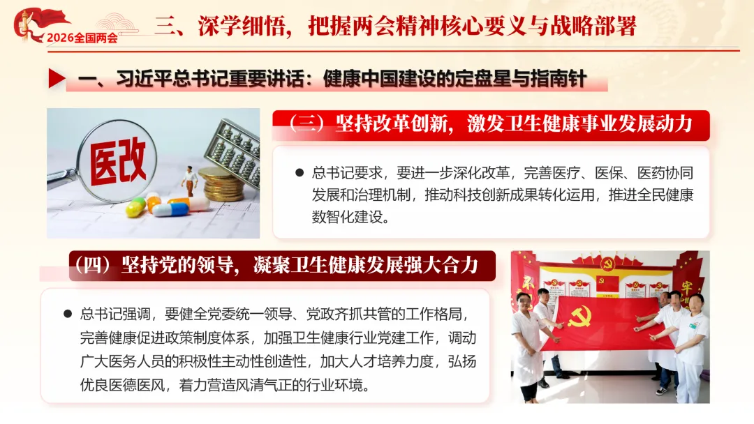 本次医疗系统专题*课聚焦两会精神核心要义,深入解读........关于卫生健康工作的......,系统梳理政府工作报告健康中国建设部署与..卫健委工作要求,以详实数据回望 “十四五” 卫生健康事业历史性成就,清晰展现基层医疗、服务可及性、一老一小保障、国民健康水平等领域的突破性进展。