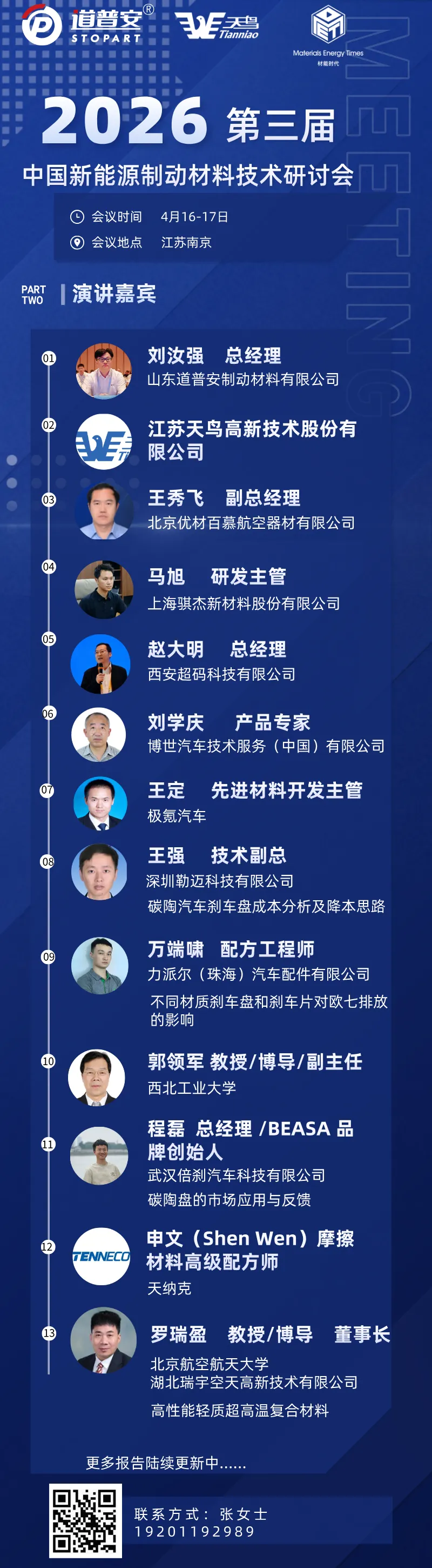 依托两届盛会积累的行业资源,本届会议将重点邀约乘用车、商用车、赛车、轨道交通、飞行汽车及制动盘、刹车片等领域核心人士到场,汇聚道普安、天鸟、志远高热、博望碳陶等众多知名企业代表,构建覆盖产学研用的全链条交流生态,实现技术碰撞与商务合作的双重丰收。