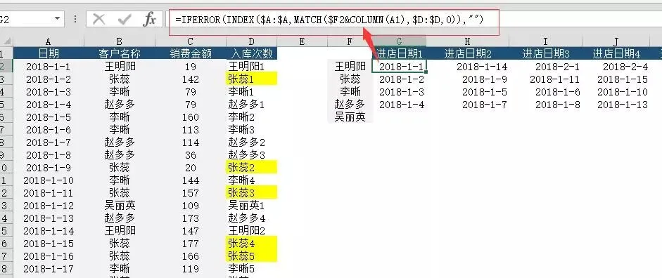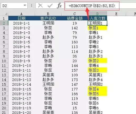 添加此序号的作用是,在添加之后,即可查找出每个客户的进店日期。