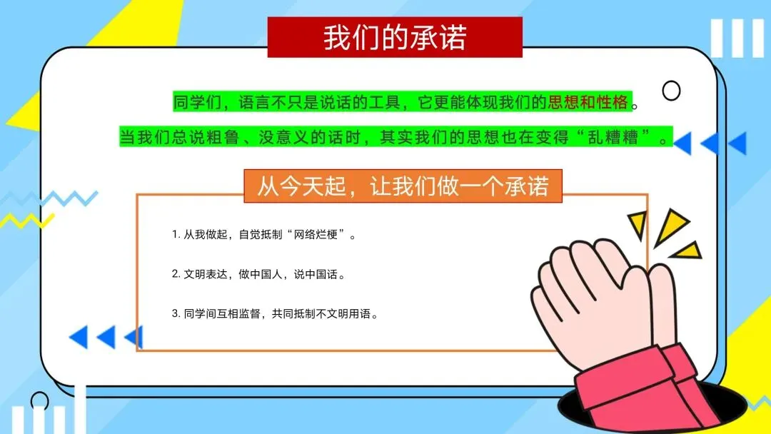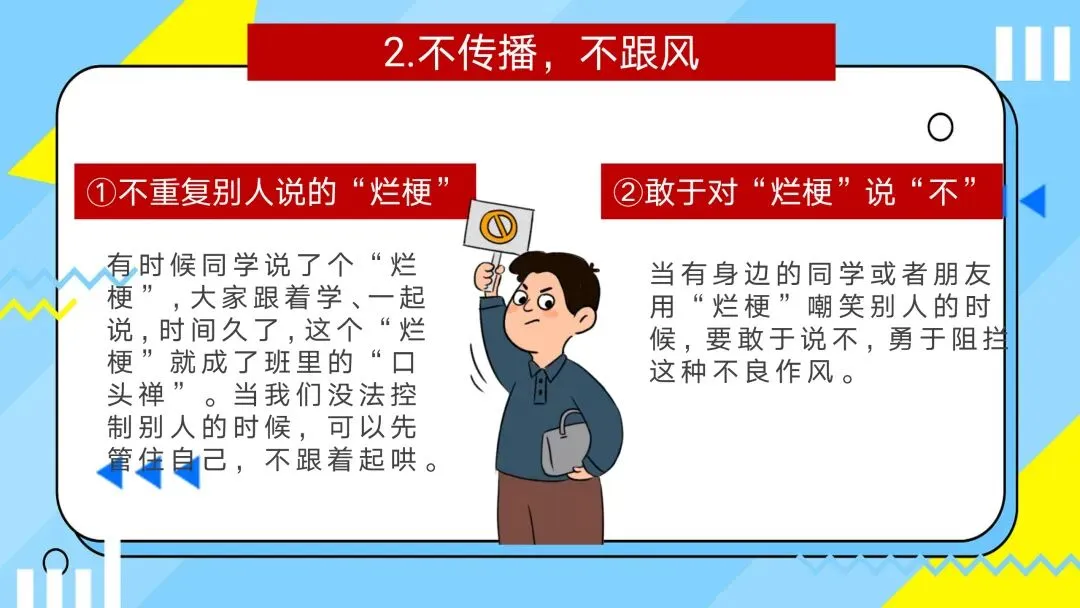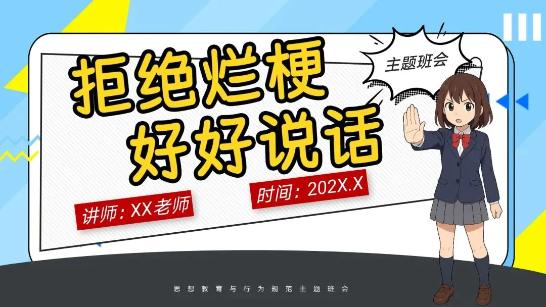 【通用】【文明教育】主题班会PPT+逐字稿:拒绝烂梗,好好说话