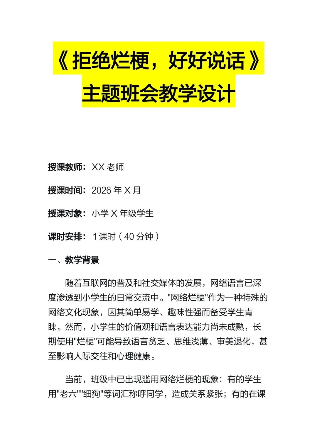 >【通用】【文明教育】主题班会PPT+逐字稿:拒绝烂梗,好好说话