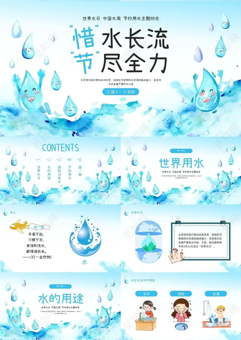 今天给大家带来10套322世界水日主主题班会PPT模板,可用于节约用水宣传、讲座、主题班会等!