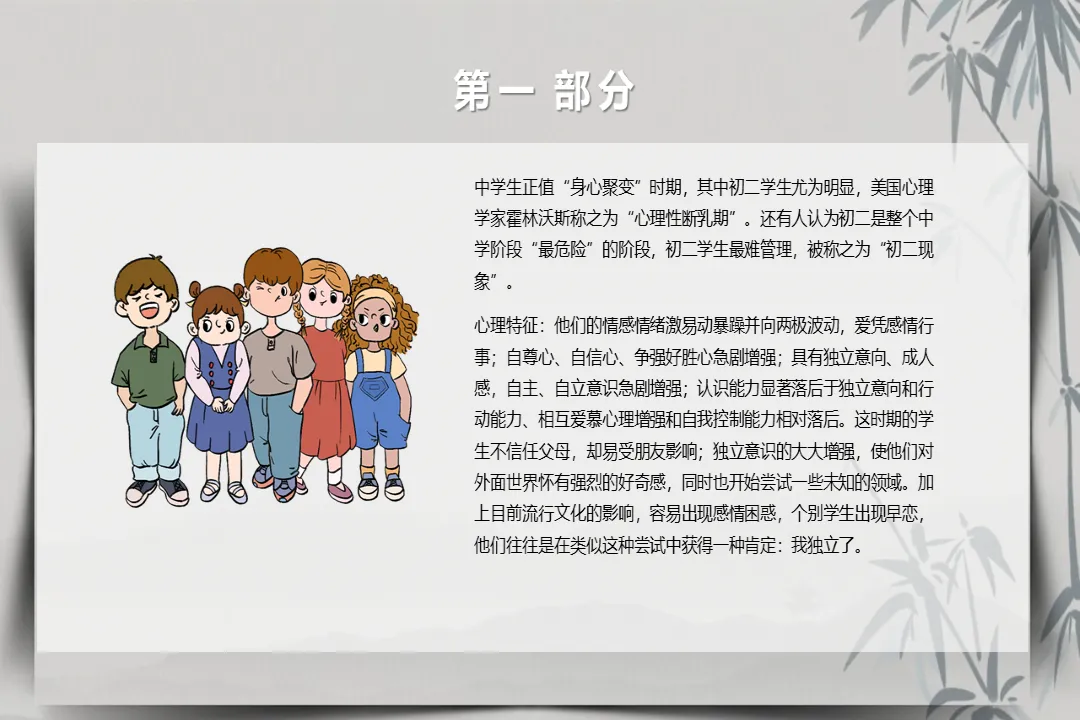 初中阶段尤其是初二,是孩子的 “心理性断乳期”,也就是常说的 “初二现象”,孩子情绪波动大、独立意识强,却又缺乏足够的自控力,易受外界影响,这就需要家校双方多关注、多引导。开学以来,本班大部分孩子能珍惜时间、刻苦学习,但也有少数孩子缺乏学习目标、上课精力不集中,学习习惯和方法亟待改进,这也是我们本次家长会想重点和大家沟通的问题。