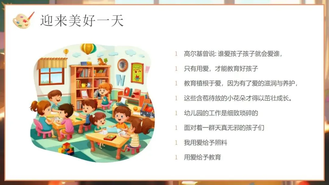 高尔基说,谁爱孩子,孩子就会爱谁,只有用爱,才能教育好孩子。幼儿园的工作琐碎而温暖,面对一群天真无邪的孩子,我们的每一份付出,都藏着对他们的呵护与期许。把爱化为语言,在孩子无助时给予安慰,在孩子犯错时温柔引导,不批评、不指责,用包容守护他们的纯真。