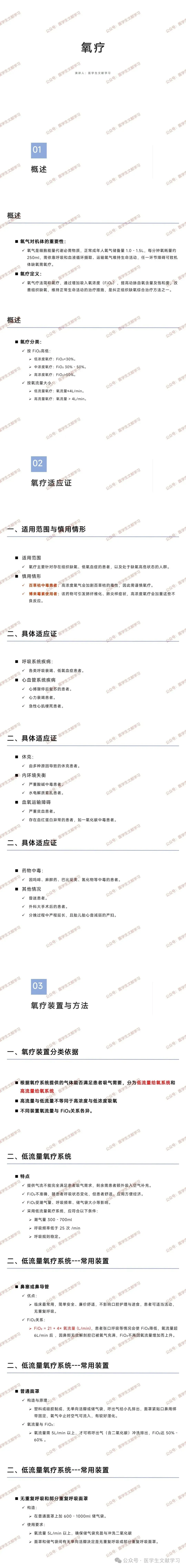 按氧流量:低流量氧疗(氧流量≤4L/min)、高流量氧疗(氧流量 > 4L/min)。