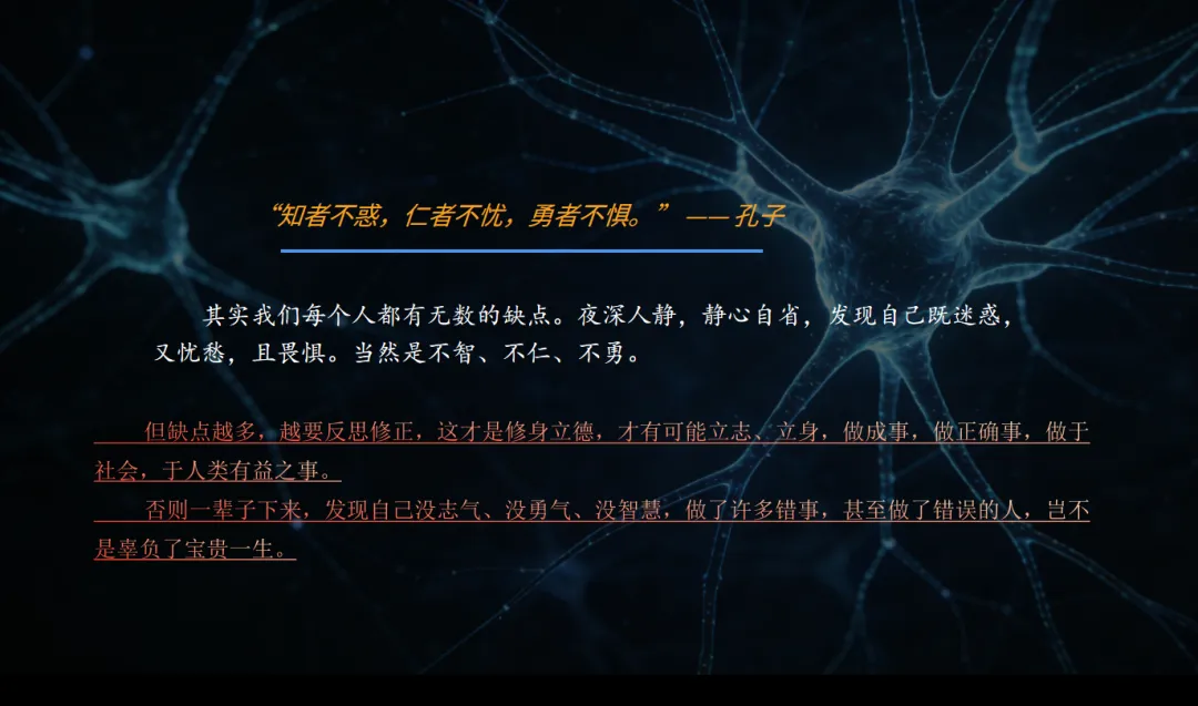 最后这篇开学典礼的稿子,我最想写的是“反思”。“智、仁、勇”的境界估计未来三十年无望,过去三十多年的急躁、傲慢、懒惰、愚蠢倒是历历在目。