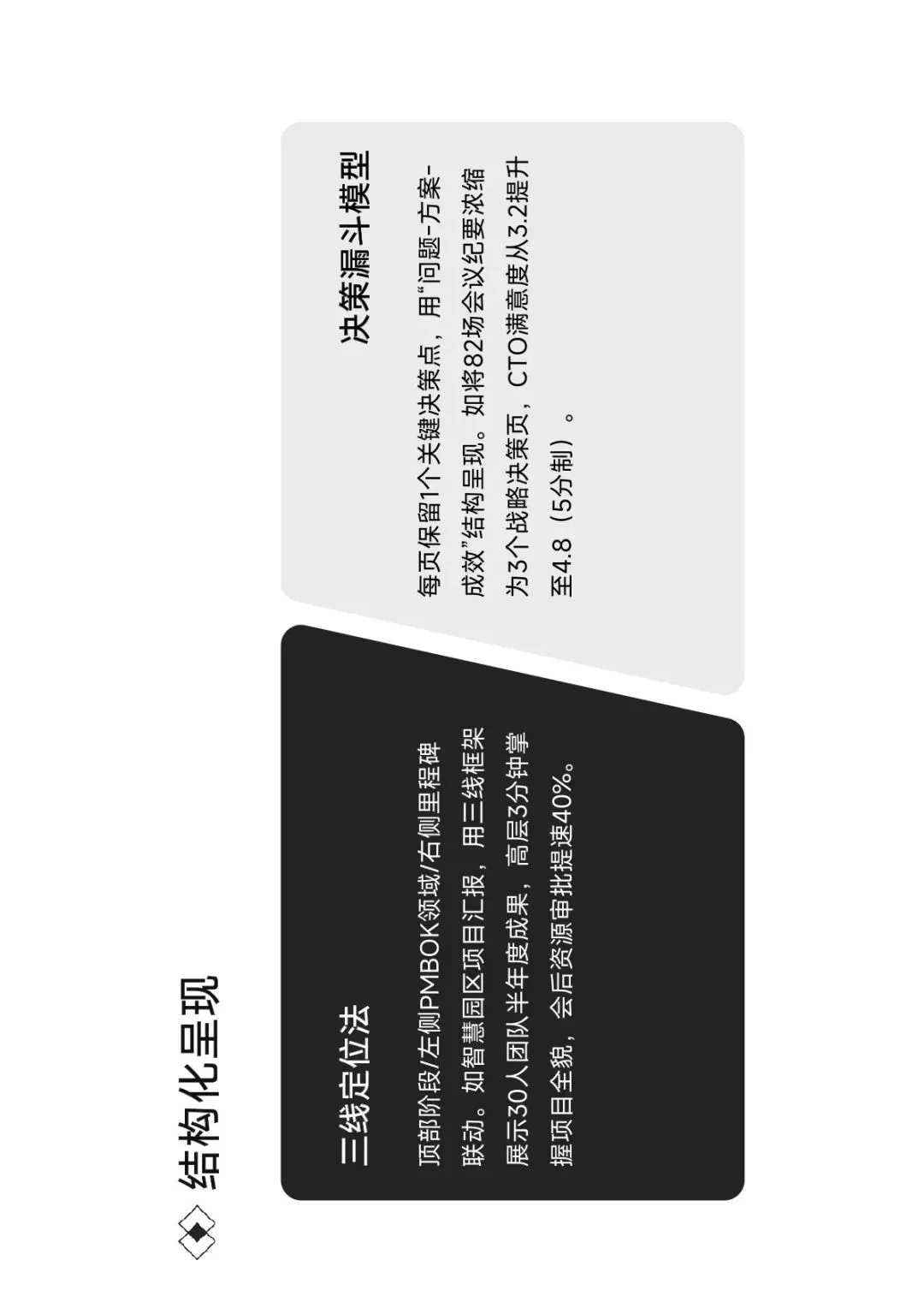 智慧园区项目汇报中,用此框架让高层3分钟掌握30人团队半年的工作全貌,资源审批提速40%。