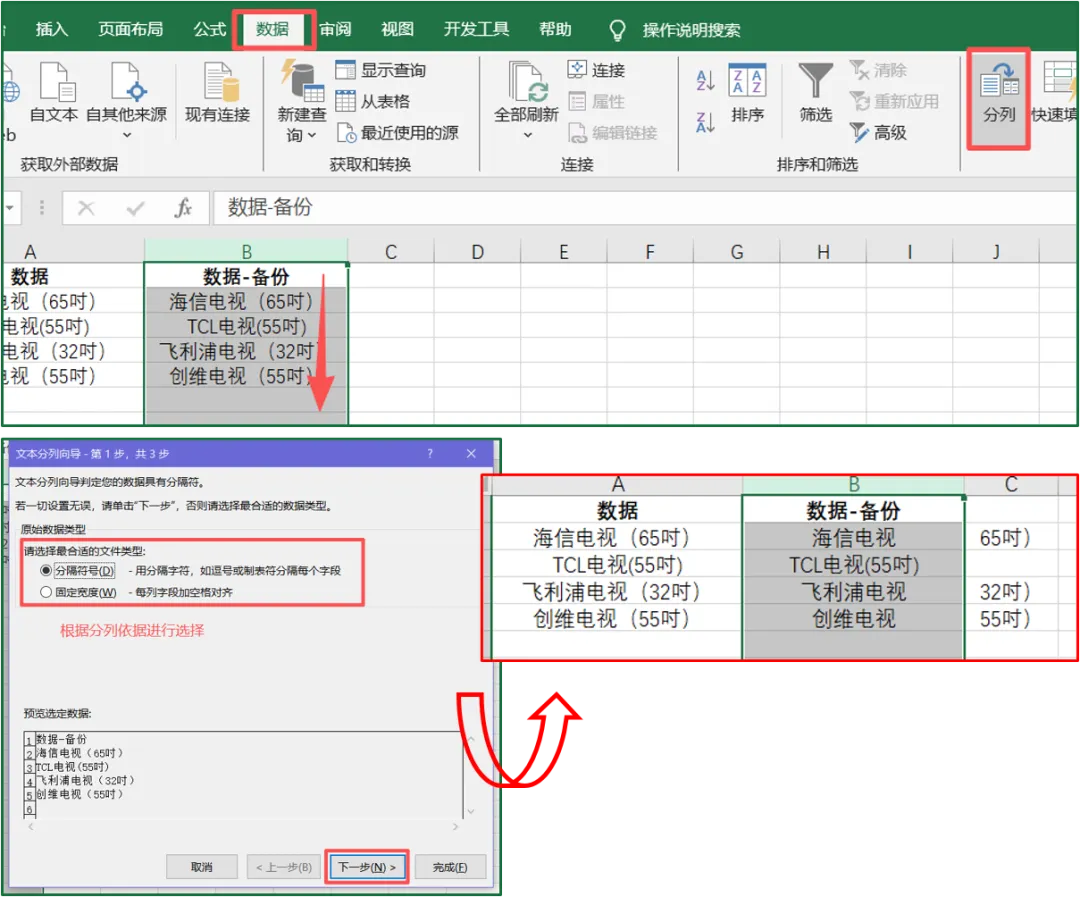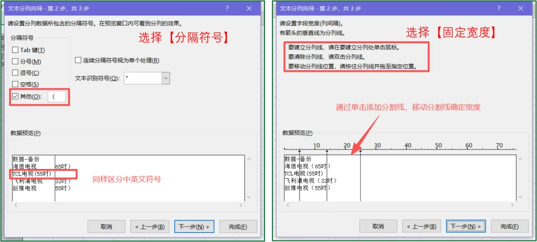 公式2表示先按照特定符号切割,然后再取对应位置上的数据。