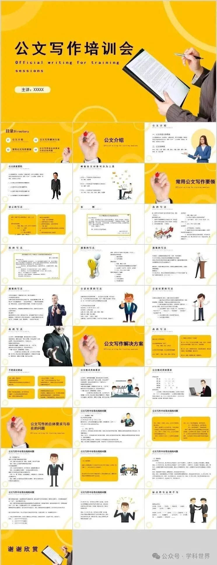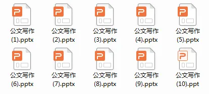 10套公文写作PPT,内容完整,制作精美,适合自学和内部培训使用。部分PPT截图展示如下: