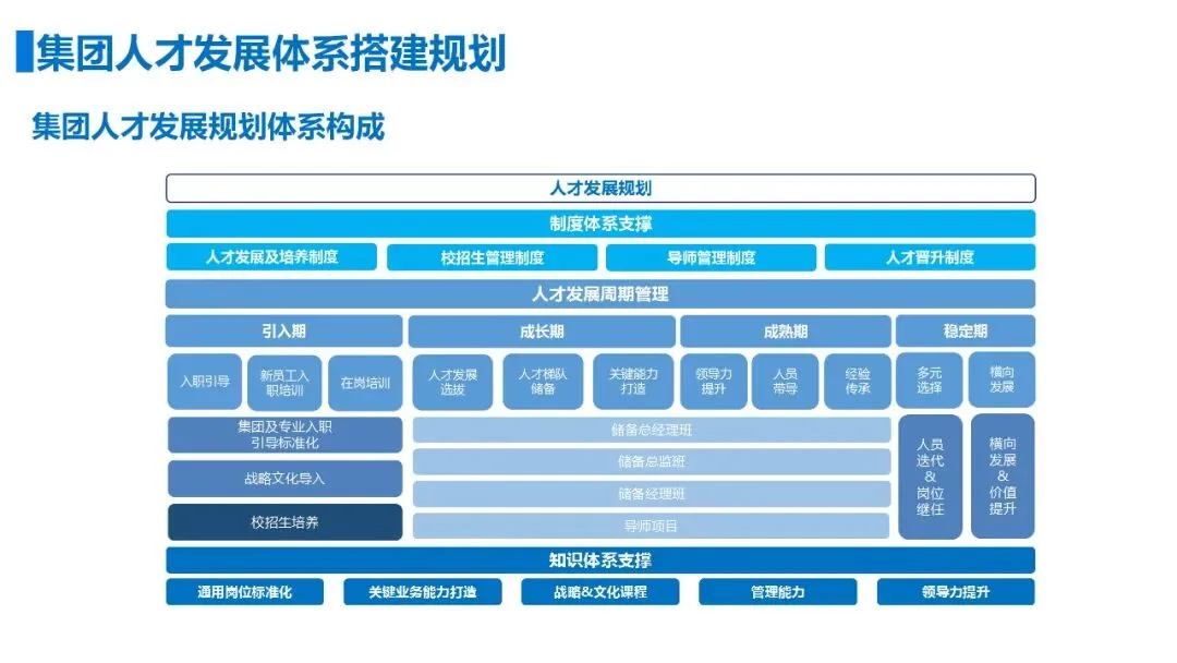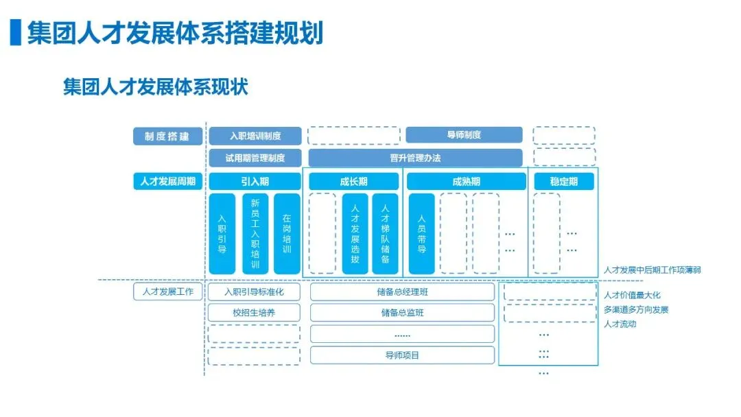 体系规划:针对以上问题,提出了全面的解决方案和体系框架,核心围绕人才的“选、用、育、留”: