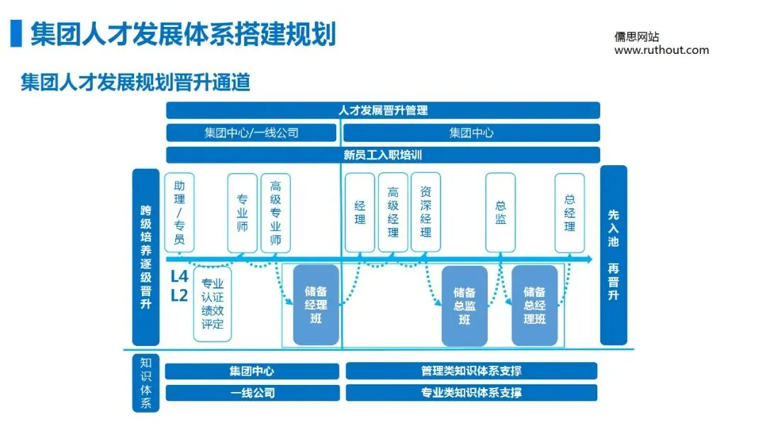 “选”与“引入”: 规划了从校招生到社会人才的多元化引进渠道,并设计了“先入池,后晋升”的选拔机制。