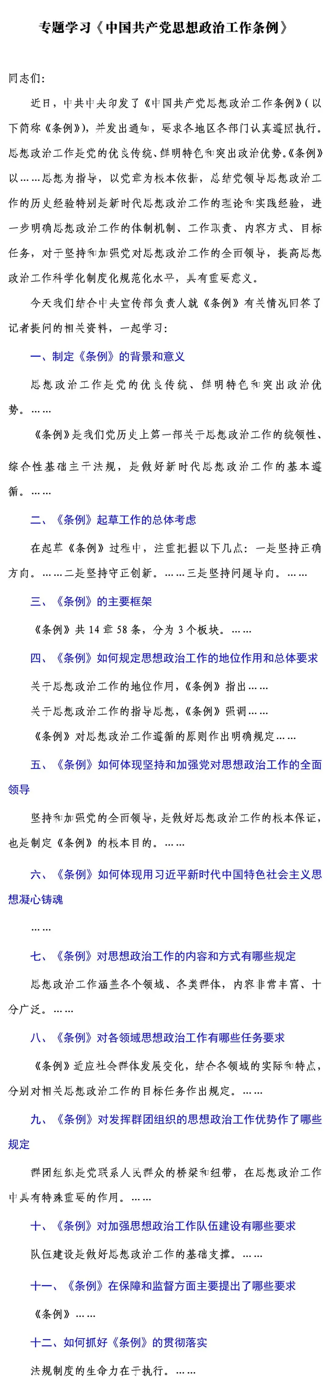 最全面的解读!学习《思想政治工作条例》PPT,共48页,讲稿6800字