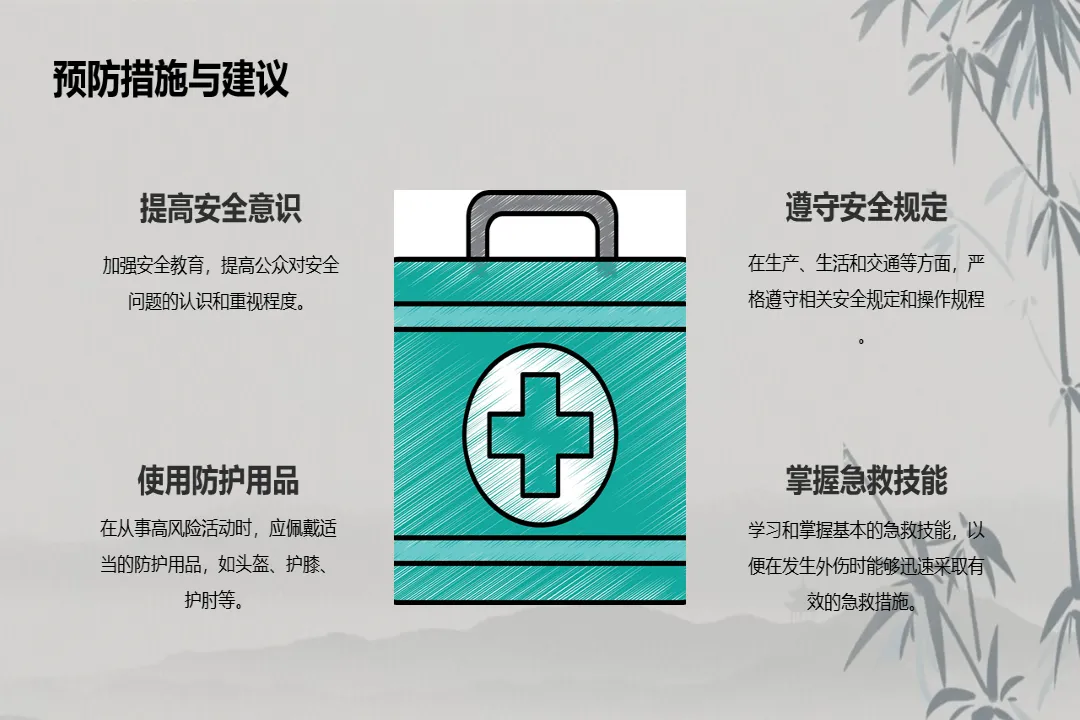 最后,提升外伤急救能力,需要我们每个人主动学习急救知识,社会各界也应普及急救课程、加强专业人员培训,完善急救设备和急救网络,形成全民懂急救、会急救的良好氛围。希望今天的讲解能让大家有所收获,把这些知识运用到生活中,在遇到突发情况时,能从容应对、科学施救。我的讲解到此结束,谢谢大家!