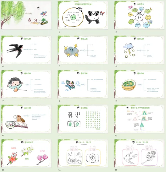 认识春分的节气特点,了解其时间、气候特征及自然现象(如昼夜平分、春分三候)。