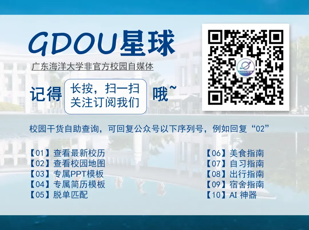 获取方式:扫码关注【GDOU星球】后台回复: 广东海洋大学