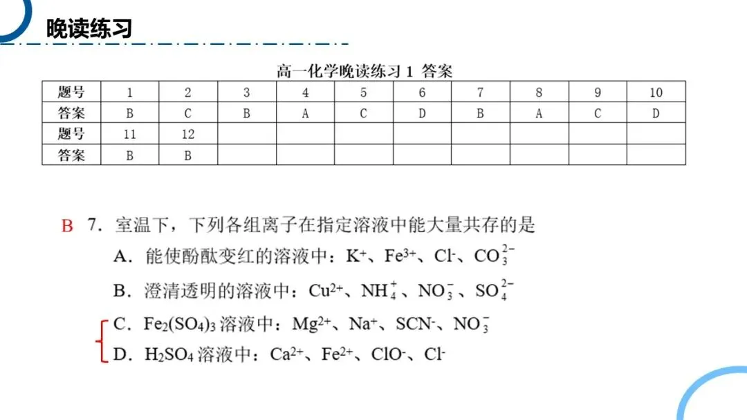 【高中化学必修一ppt】55 期末模拟卷讲评