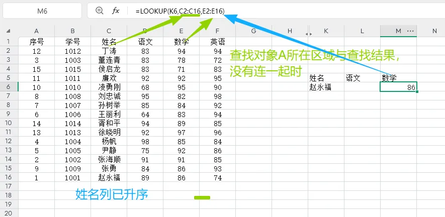 (大前提:查找对象所在的区域,要升序排序,否则查找结果可能不对。详情见图1-2)