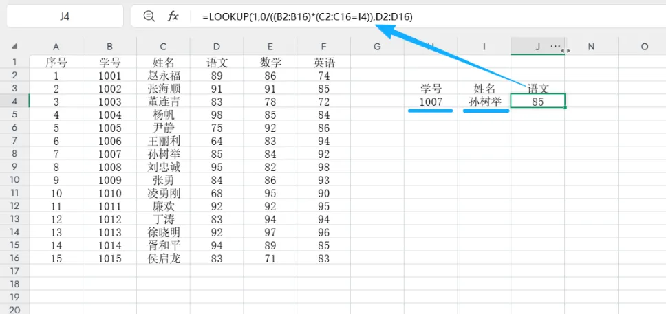 =lookup(1,0/((查找区域1=查找对象)*(查找区域2=查找对象)*(查找区域3=查找对象)),结果所在范围) 见图5