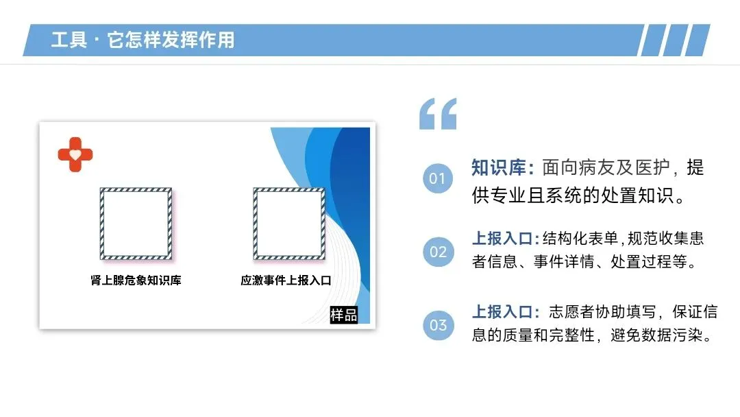 而它的作用就是我刚刚讲过的:让急救有依据,让数据有回归。